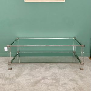 Chrome and Lucite Rectangular Coffee Table in the style of Pierre Vandel – BK784