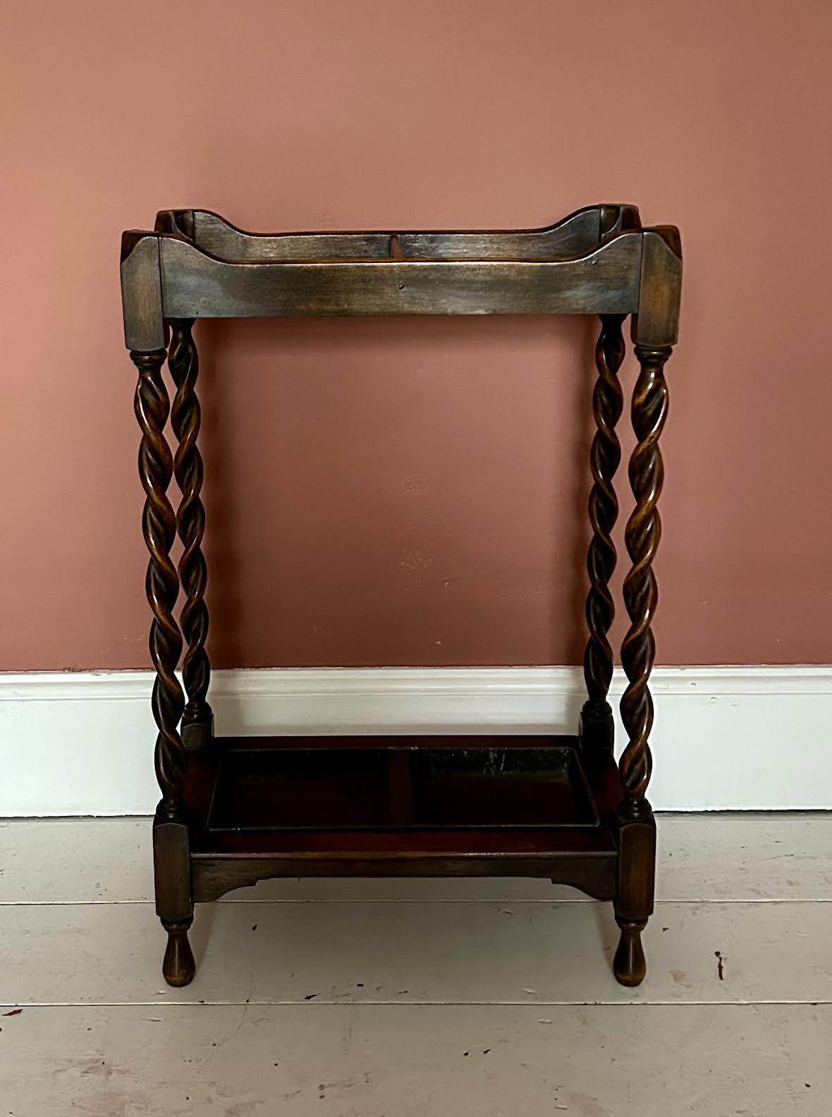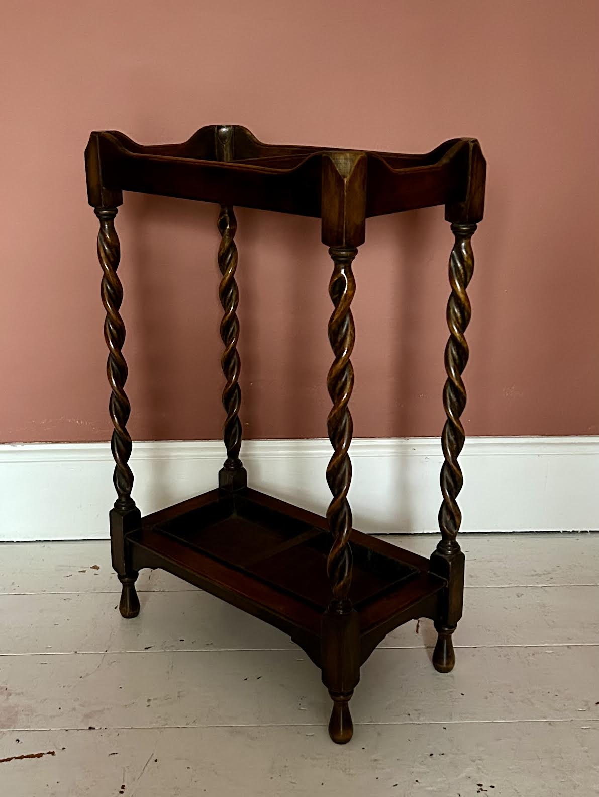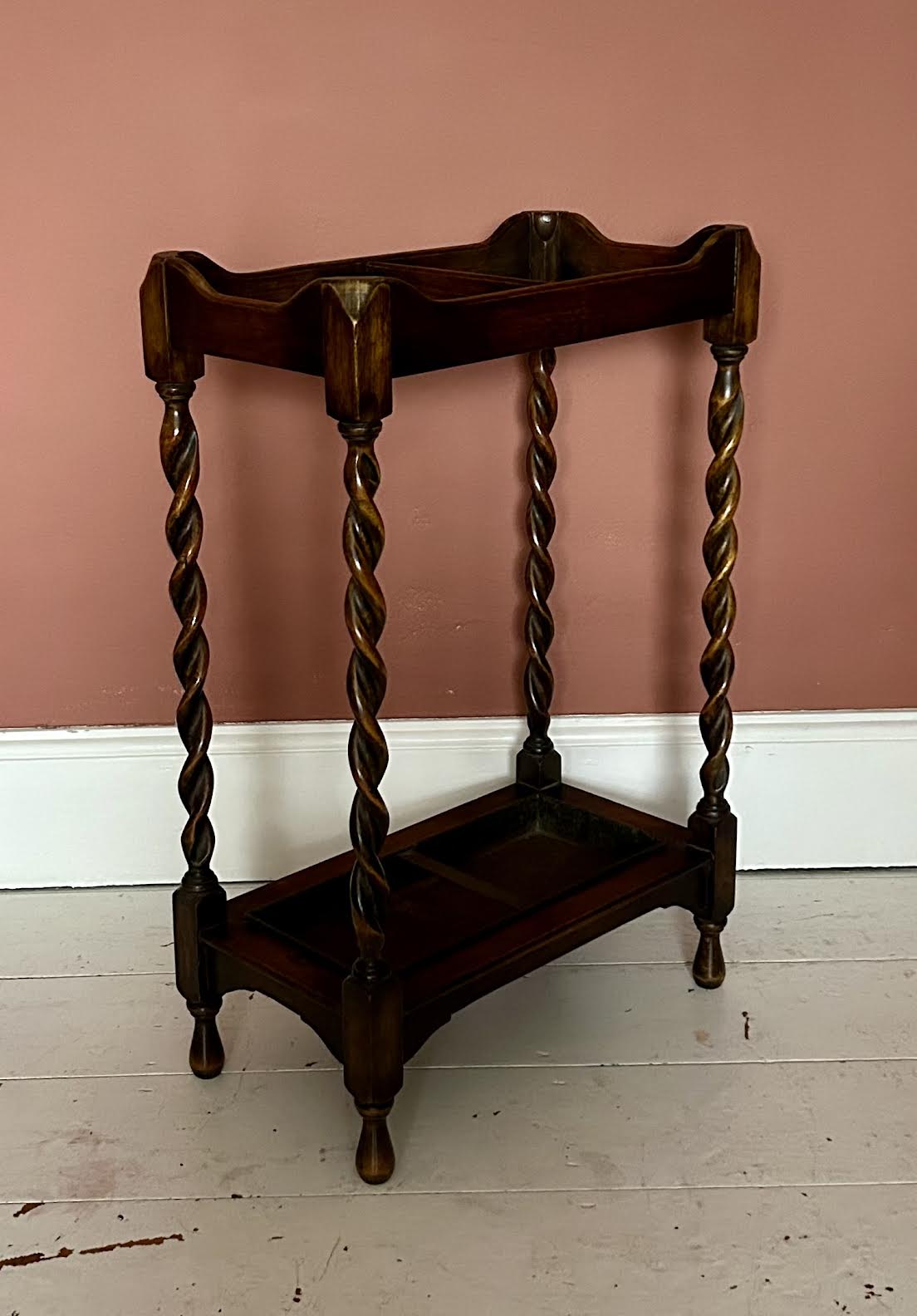 Lovely Barley Twist Wooden Umbrella Stand, with time worn patina. In very good condition for age. See photos