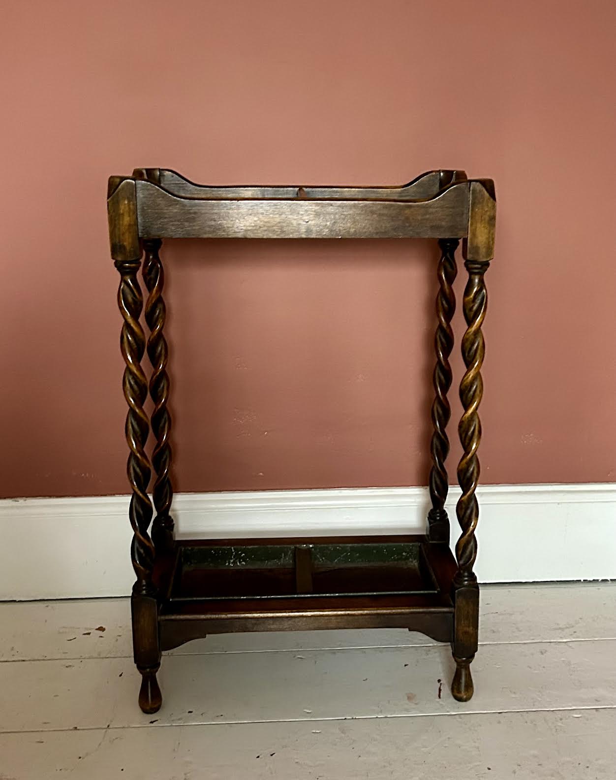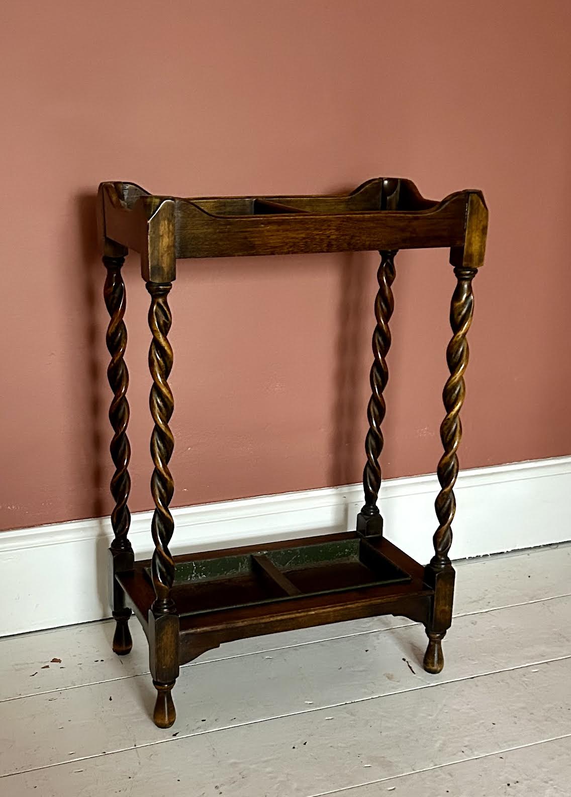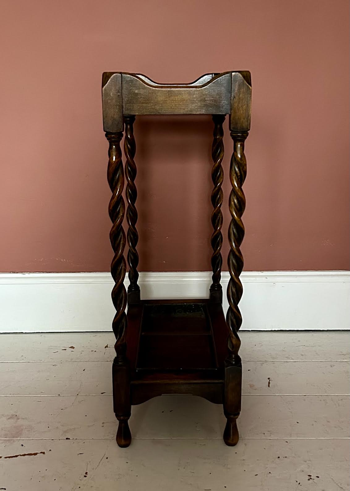 Lovely Barley Twist Wooden Umbrella Stand, with time worn patina. In very good condition for age. See photos